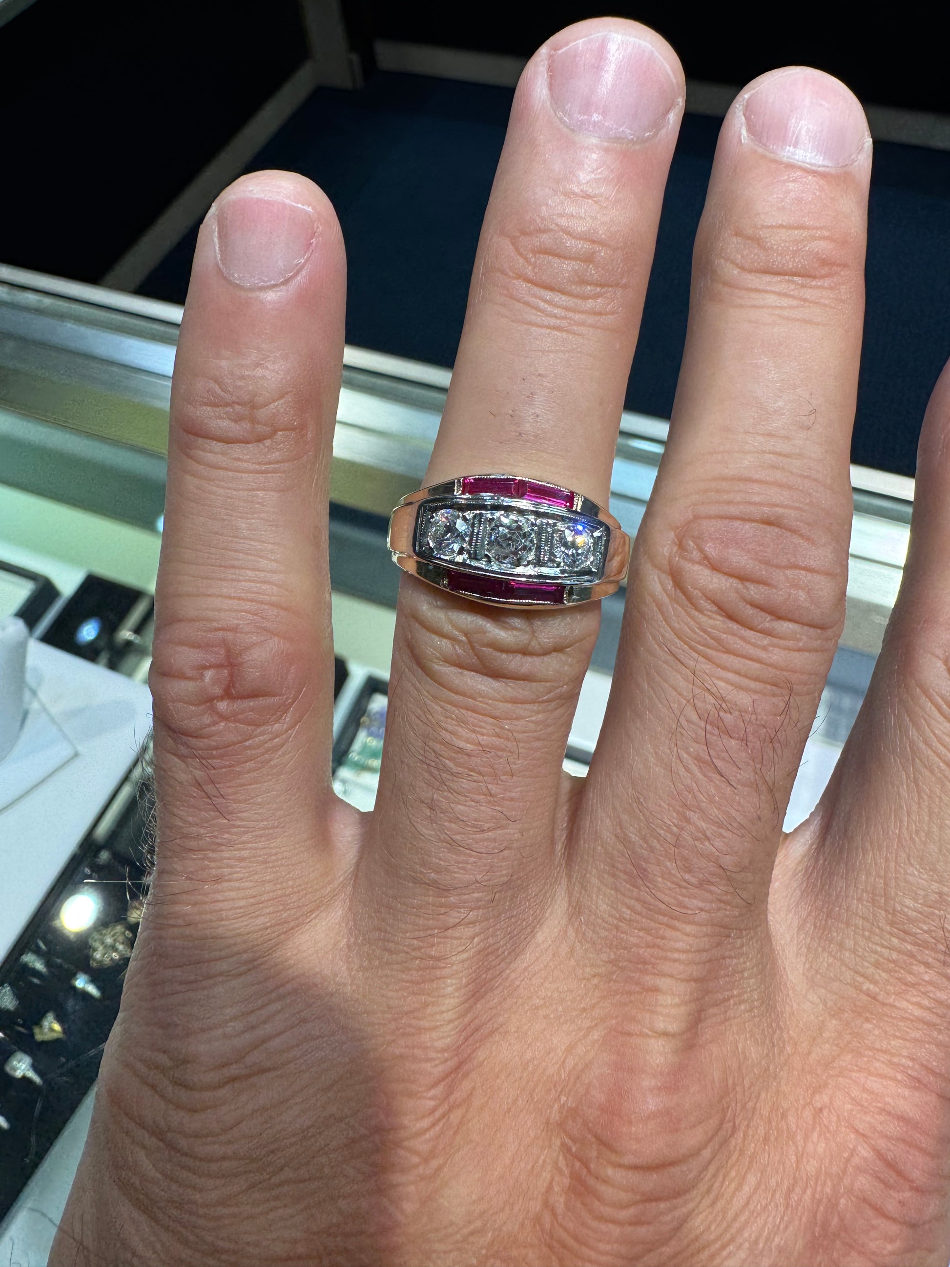 14k Mens Diamond Pinky Ring Mine Cut Size 8.25 F/i1 Natural Nice .78 Carats