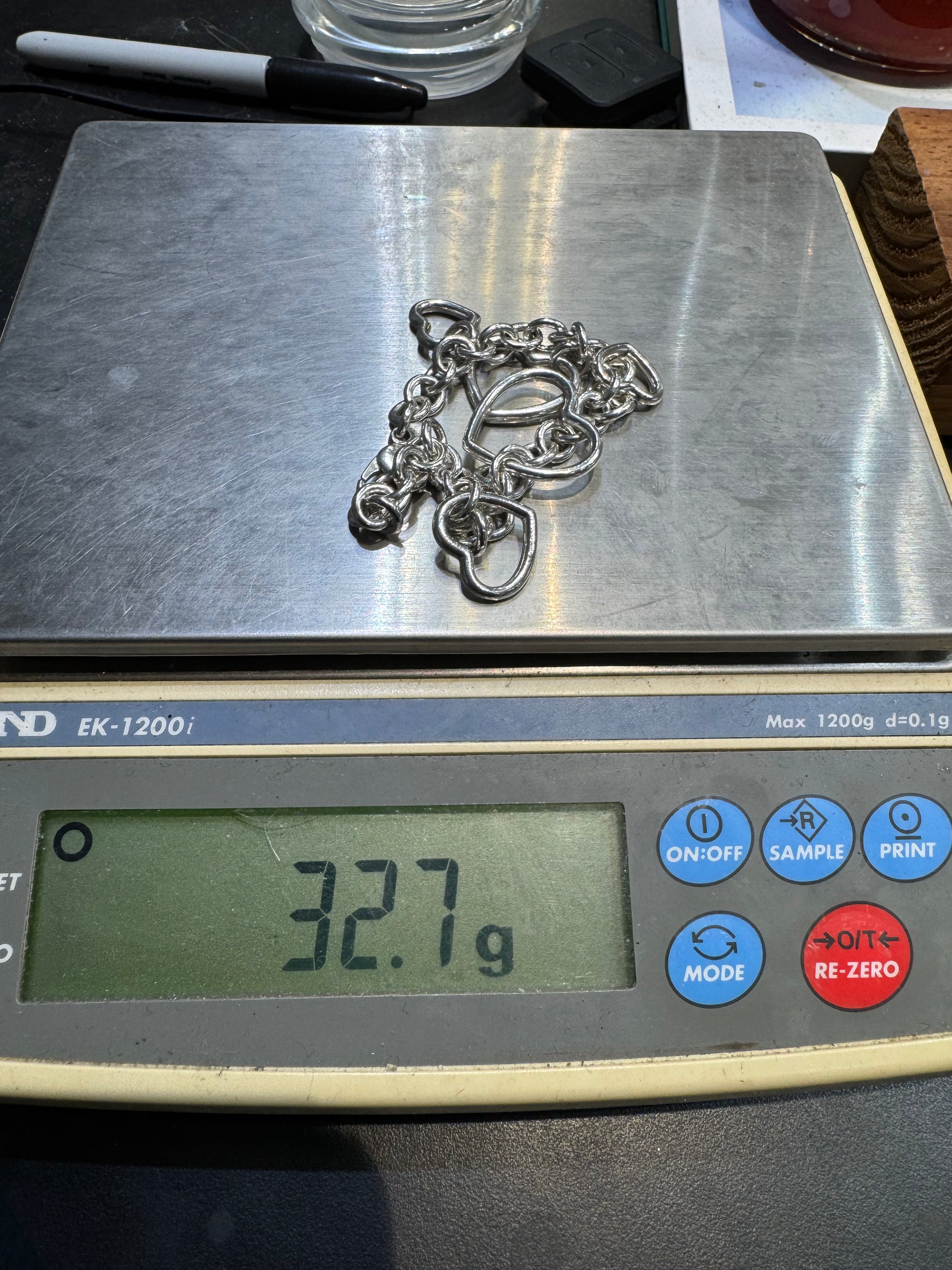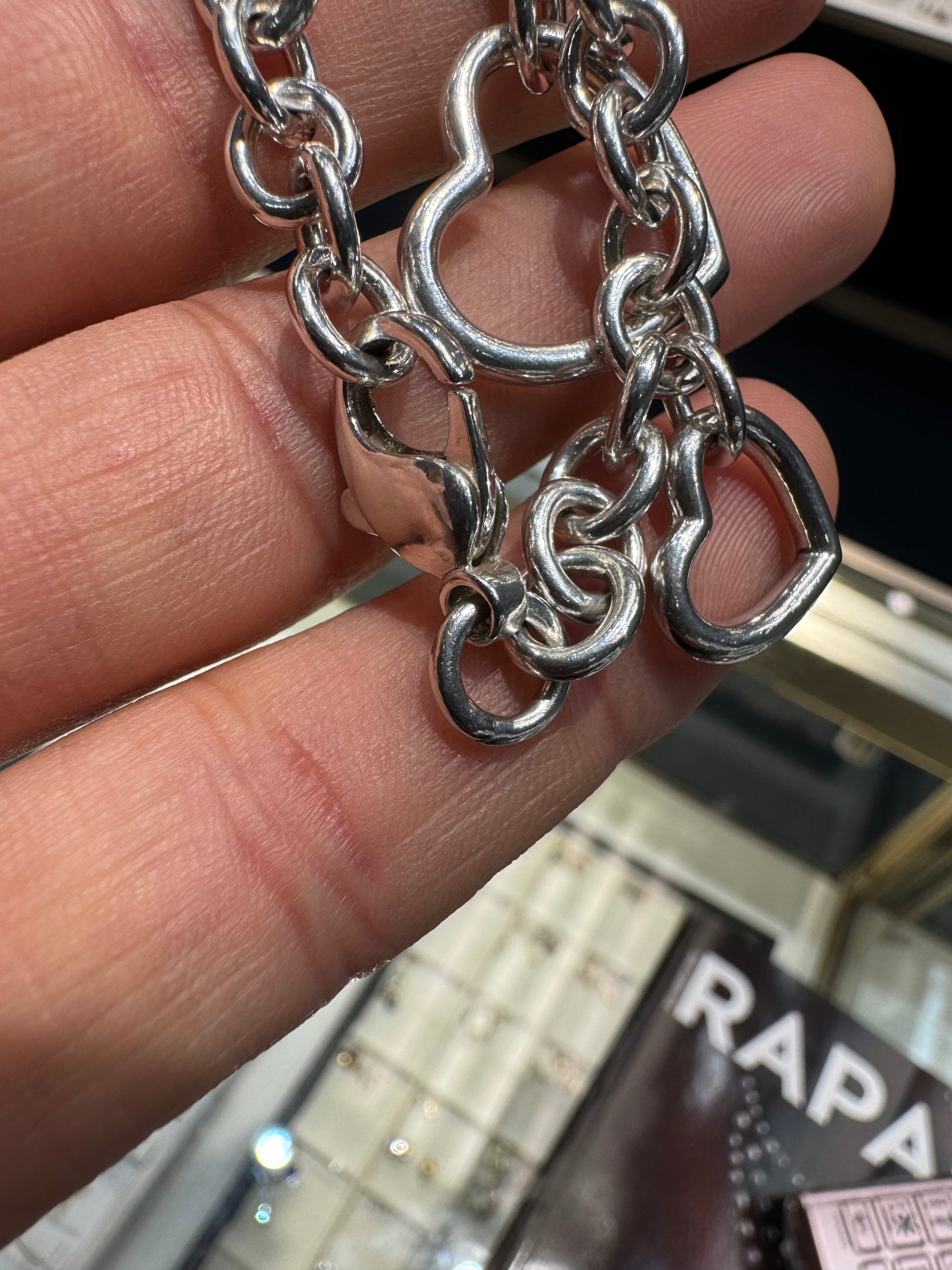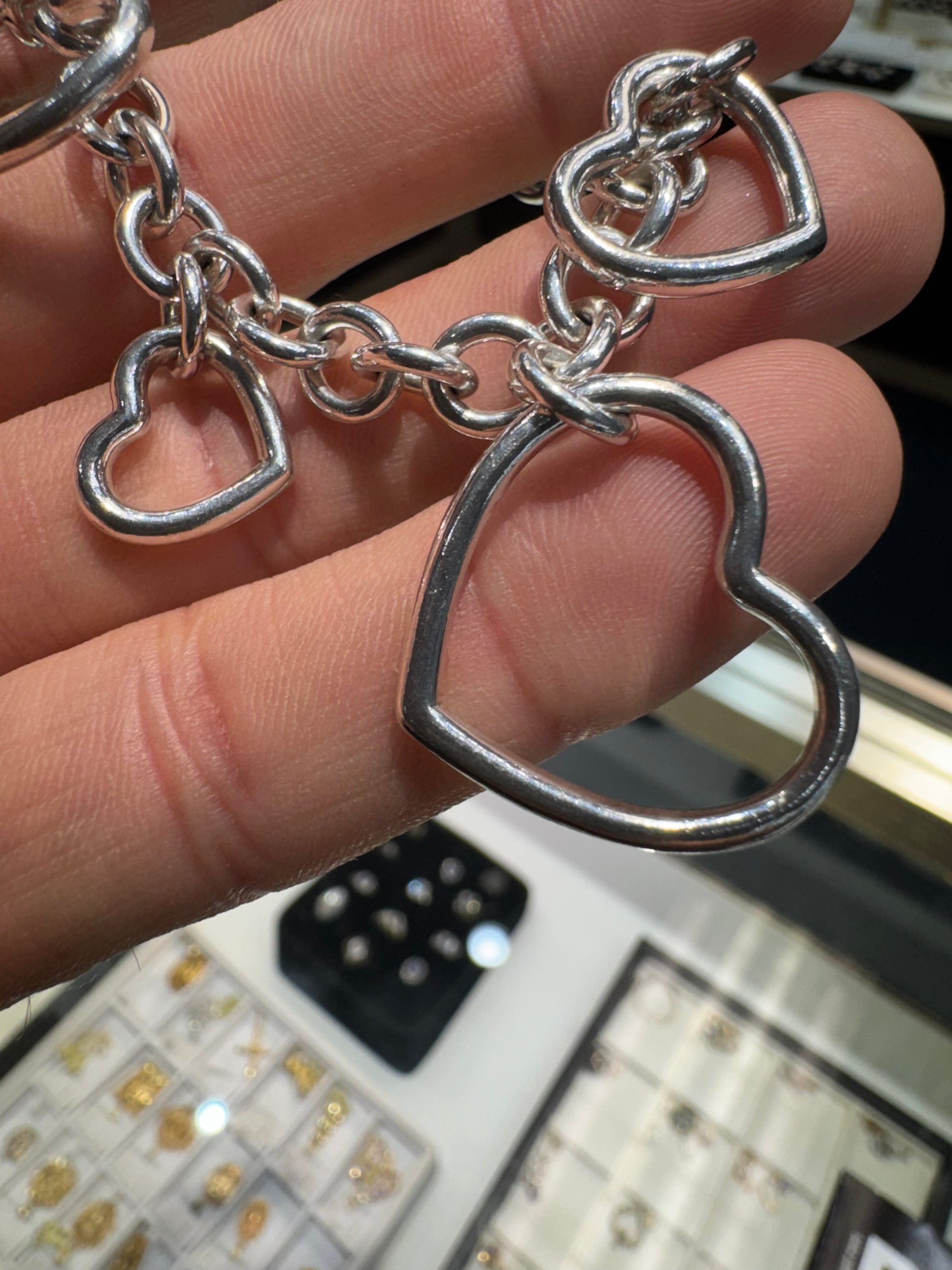 Authentic Tiffany & Co. Sterling Silver Open Heart 7.75" Charm Bracelet Nice