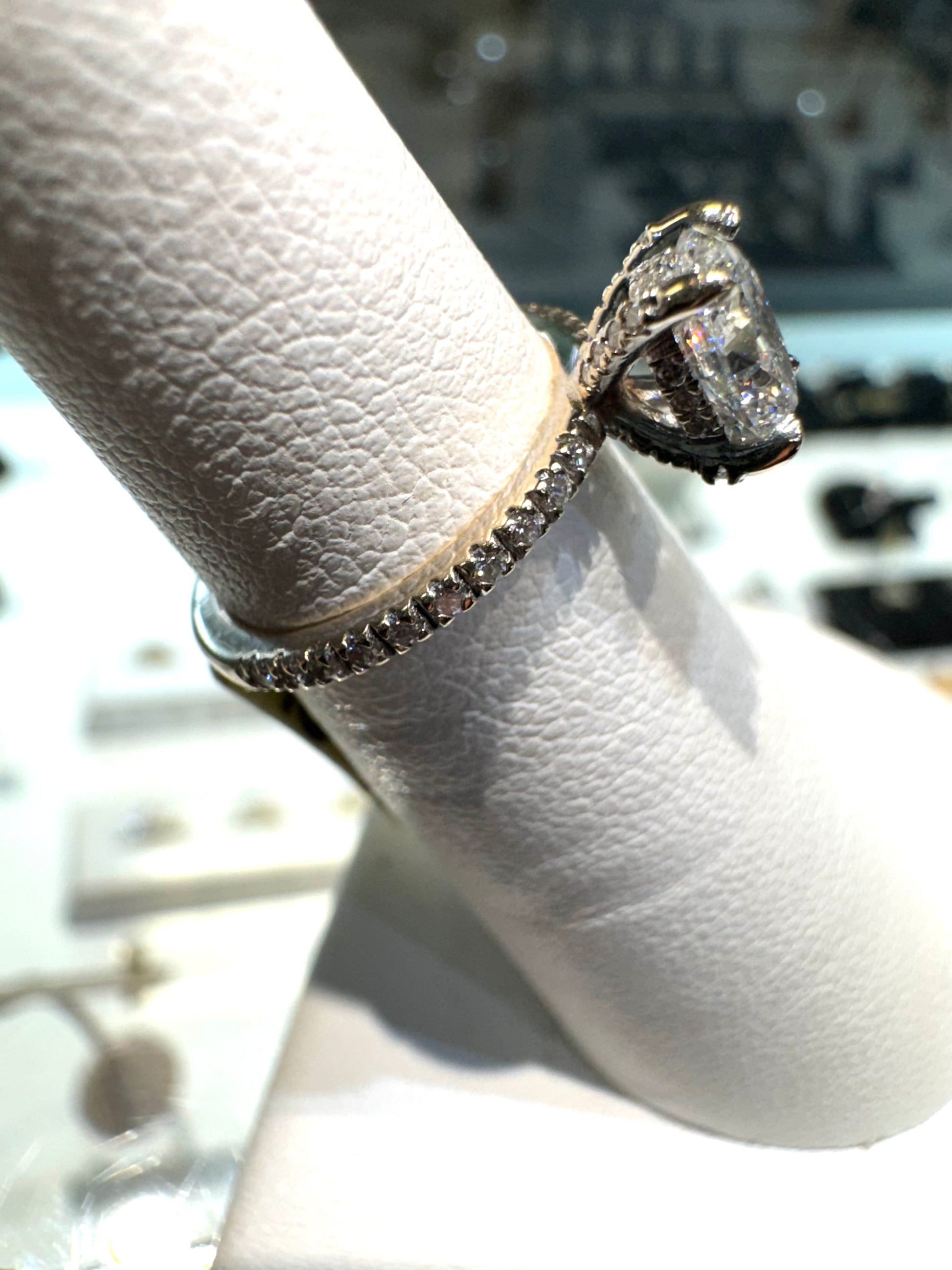 Sparkle and shine with this GIA certified 18k gold oval diamond engagement ring. Featuring a stunning .85 carat diamond, this ring is a symbol of love and commitment. Elevate your special moment with the exquisite craftsmanship and timeless elegance of this ring. Please see last photo for quality characteristics.