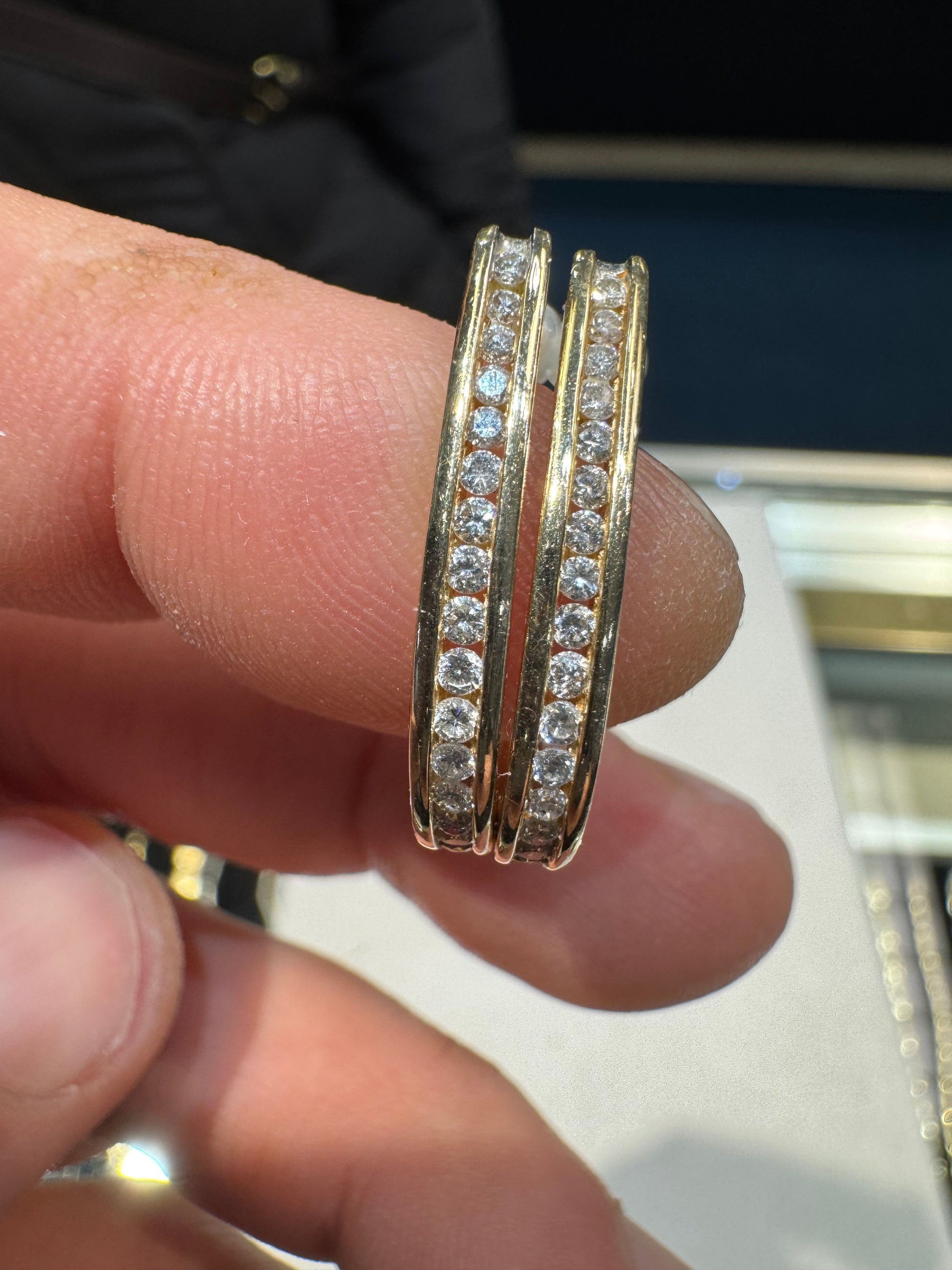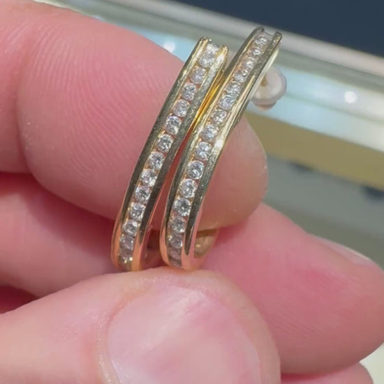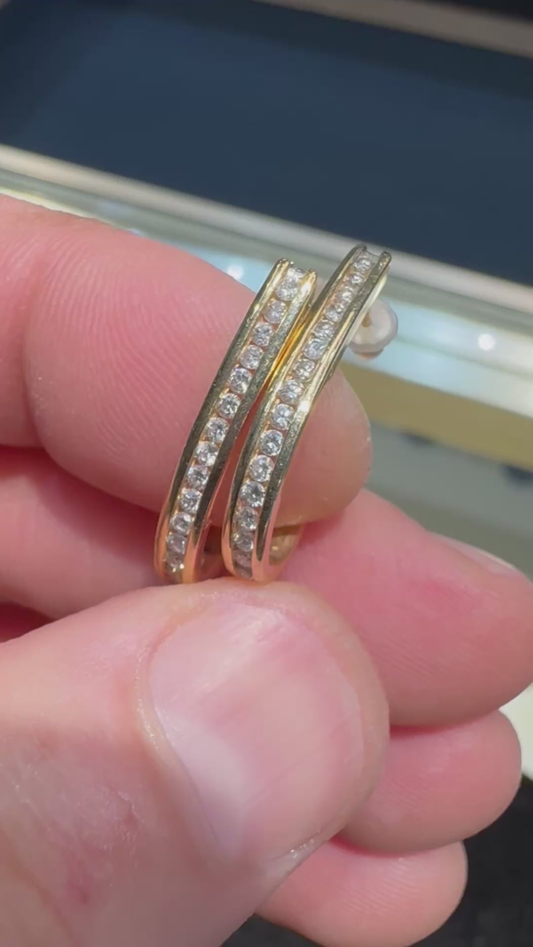 14k Gold Diamond Half Hoop Earrings 1/3 Carat Nice 3.3 Grams